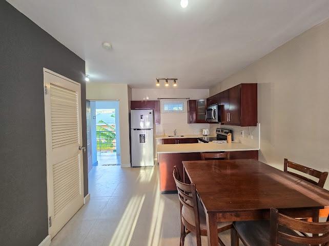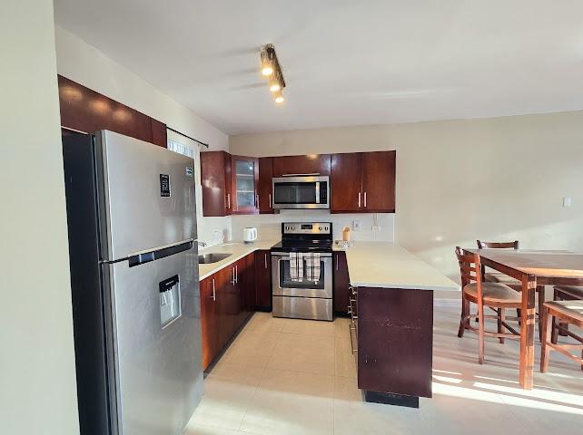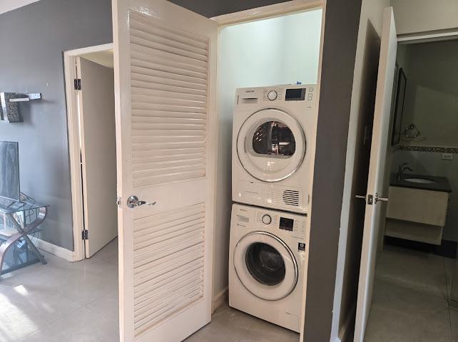 Fully furnished modern one bedroom apartment on 3rd floor in a gated complex with elevator. Amenities include generator, water storage and in unit laundry. Drying yard also available for use. Call to make this place home!