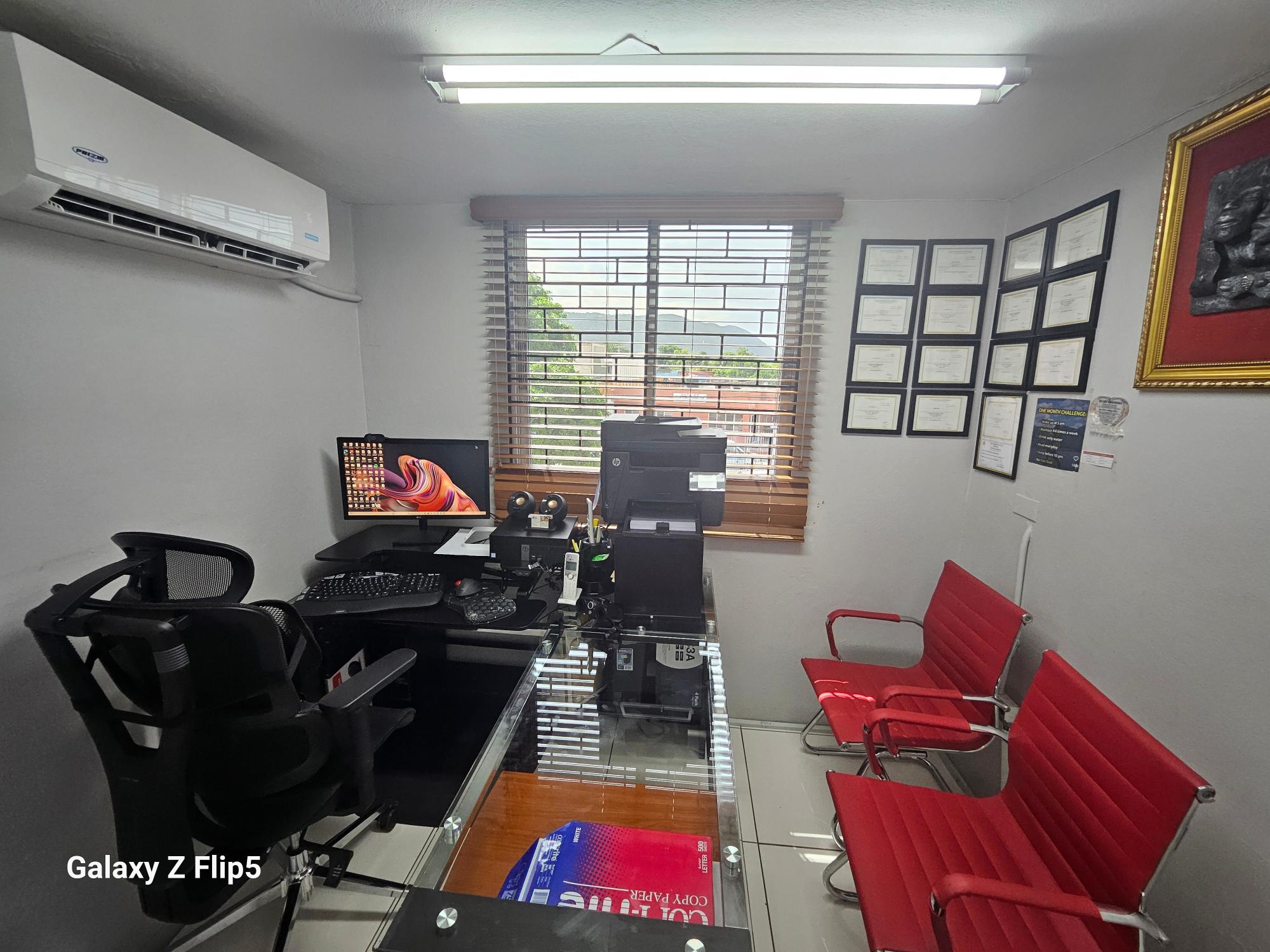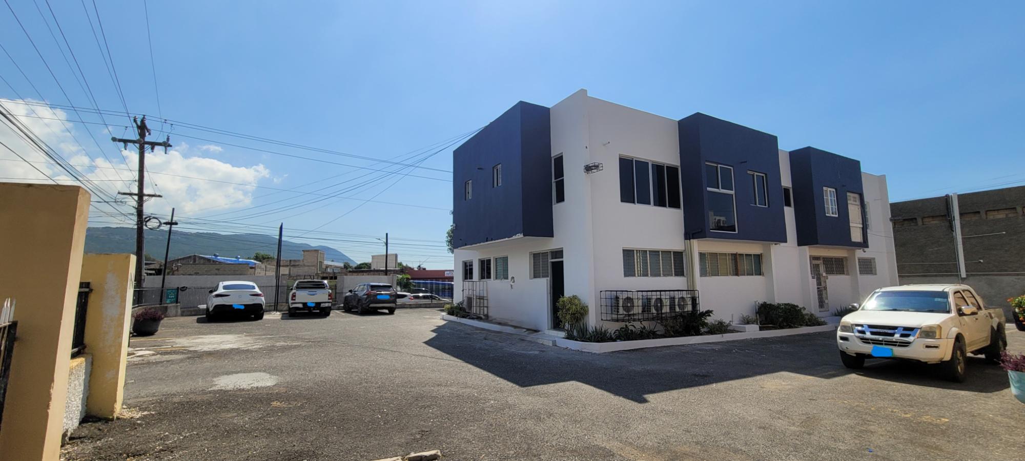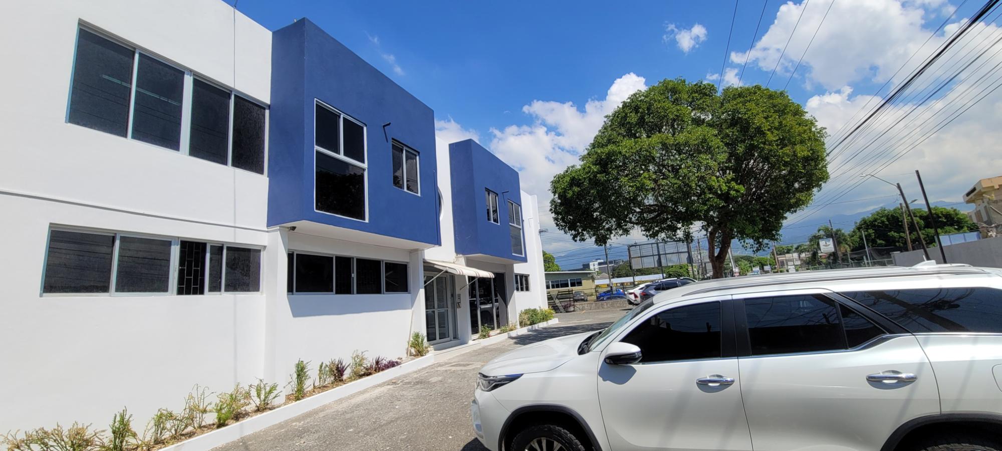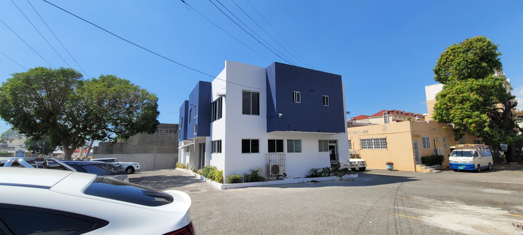 Recently renovated 2nd floor office space, conveniently located in the business hub of New Kingston on Lady Musgrave Road. This dream work-space is 564 sq. ft. consisting of 3 offices, reception/ waiting area, restroom and kitchenette. This office space is grilled and has 5 ACs with security buzzer downstairs to enter the building and additional buzzer upstairs to enter the office. This office is within a complex on a two-storey building with 8 units with adequate parking.