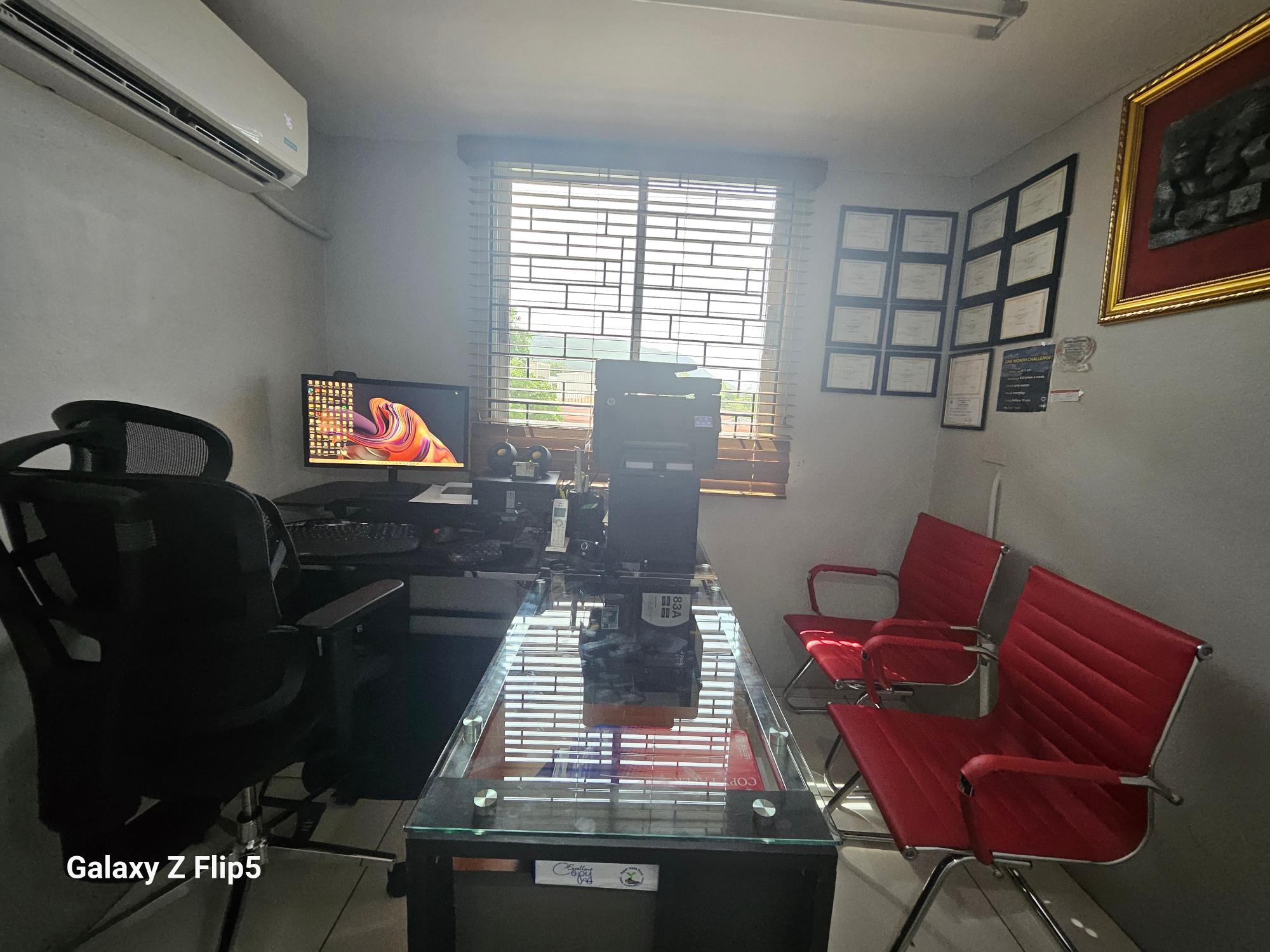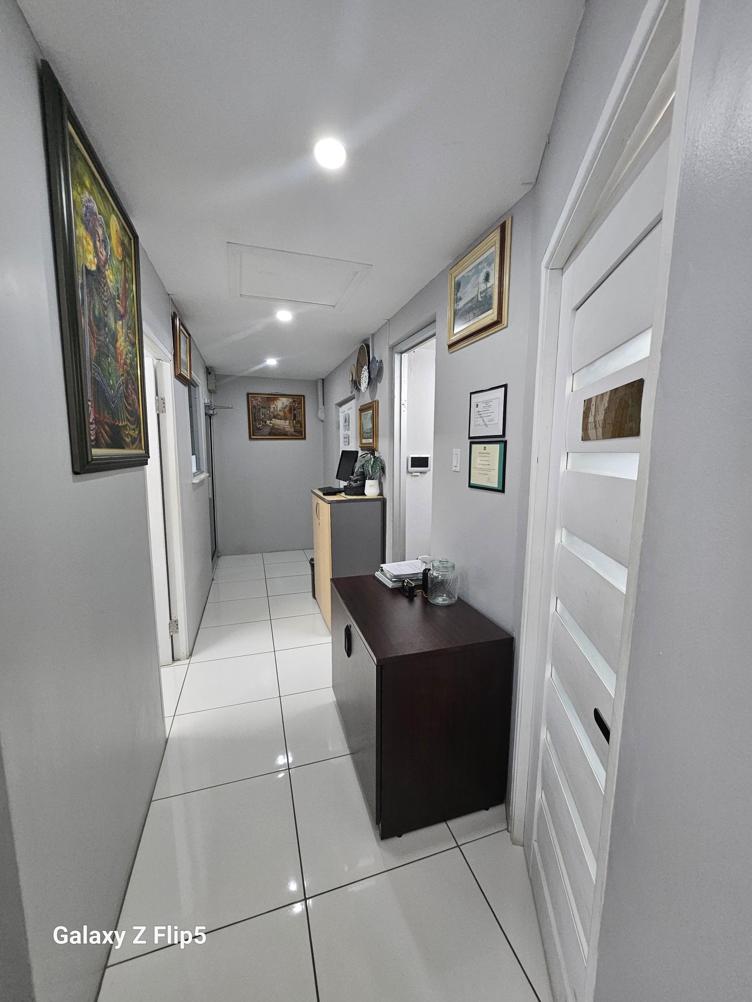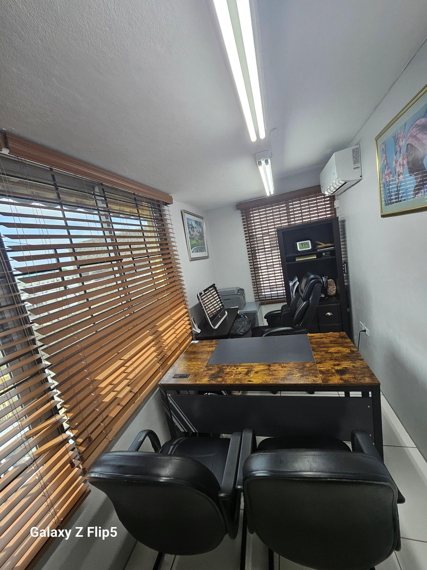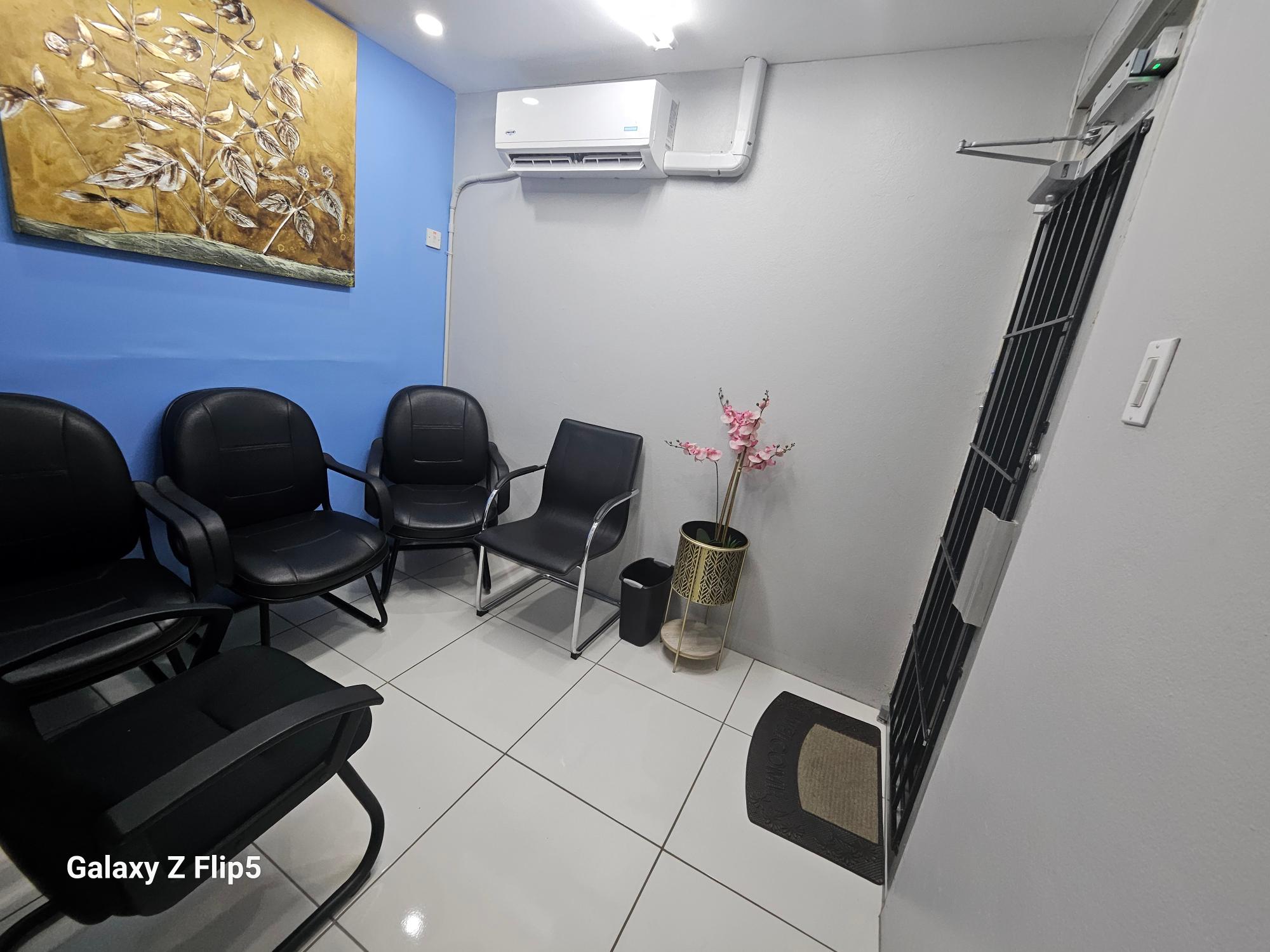 Recently renovated 2nd floor office space, conveniently located in the business hub of New Kingston on Lady Musgrave Road. This dream work-space is 564 sq. ft. consisting of 3 offices, reception/ waiting area, restroom and kitchenette. This office space is grilled and has 5 ACs with security buzzer downstairs to enter the building and additional buzzer upstairs to enter the office. This office is within a complex on a two-storey building with 8 units with adequate parking.