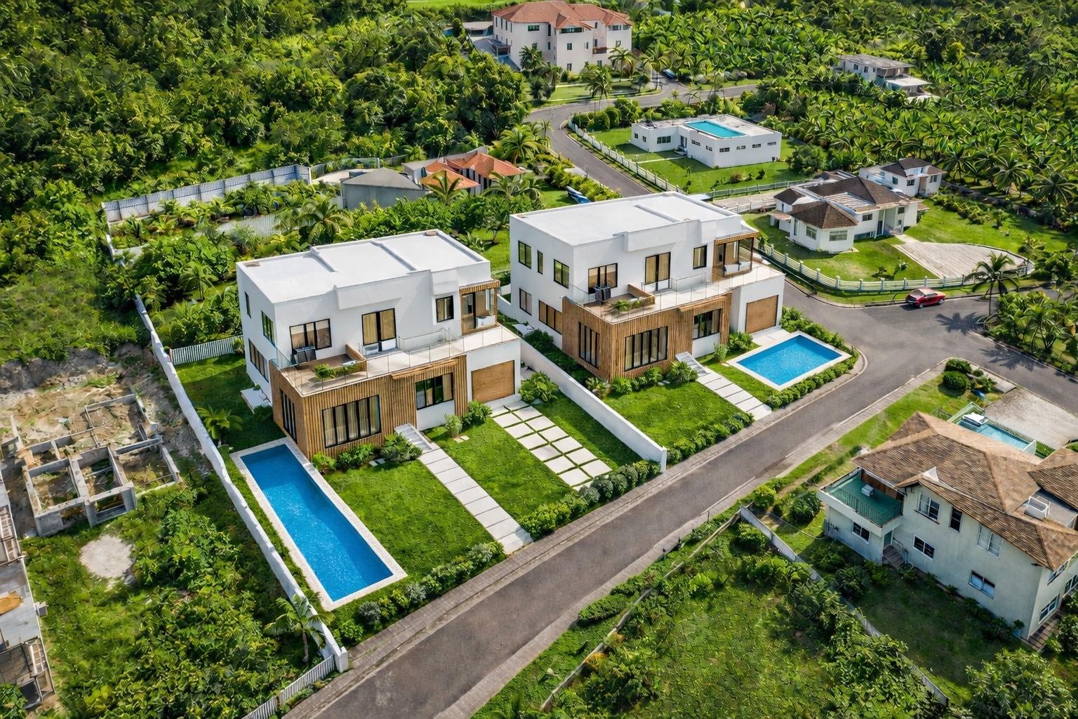 Set within the highly sought-after Ironshore community, this brand-new contemporary residence is currently under construction and positioned just minutes from Montego Bay’s top resorts, beaches & restaurants. Designed for elevated Caribbean living, the home is being engineered with hurricane-resilient construction capable of withstanding Category 5 storm conditions, ensuring strength, stability, and long-term performance. Spanning two storeys, the home offers an open-concept design with generous living and dining spaces, a gourmet kitchen, and multiple ensuite bedrooms. The primary suite is envisioned as a private retreat, complete with a spa-inspired bath and balcony overlooking the landscaped surroundings. Buyers have the unique opportunity to personalize finishes before completion, creating a residence that reflects both lifestyle and taste. Outdoor areas will include elegant terraces and a sleek pool lounge ideal for entertaining or unwinding. This is a rare opportunity to secure a customizable luxury home that seamlessly combines refined design with exceptional structural resilience in one of Montego Bay’s premier residential locations